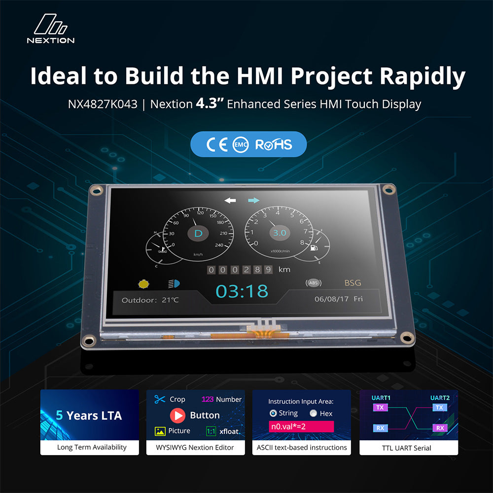 Nextion NX8048P050-011R 5.0" Intelligent Series HMI Resistive Touch Display